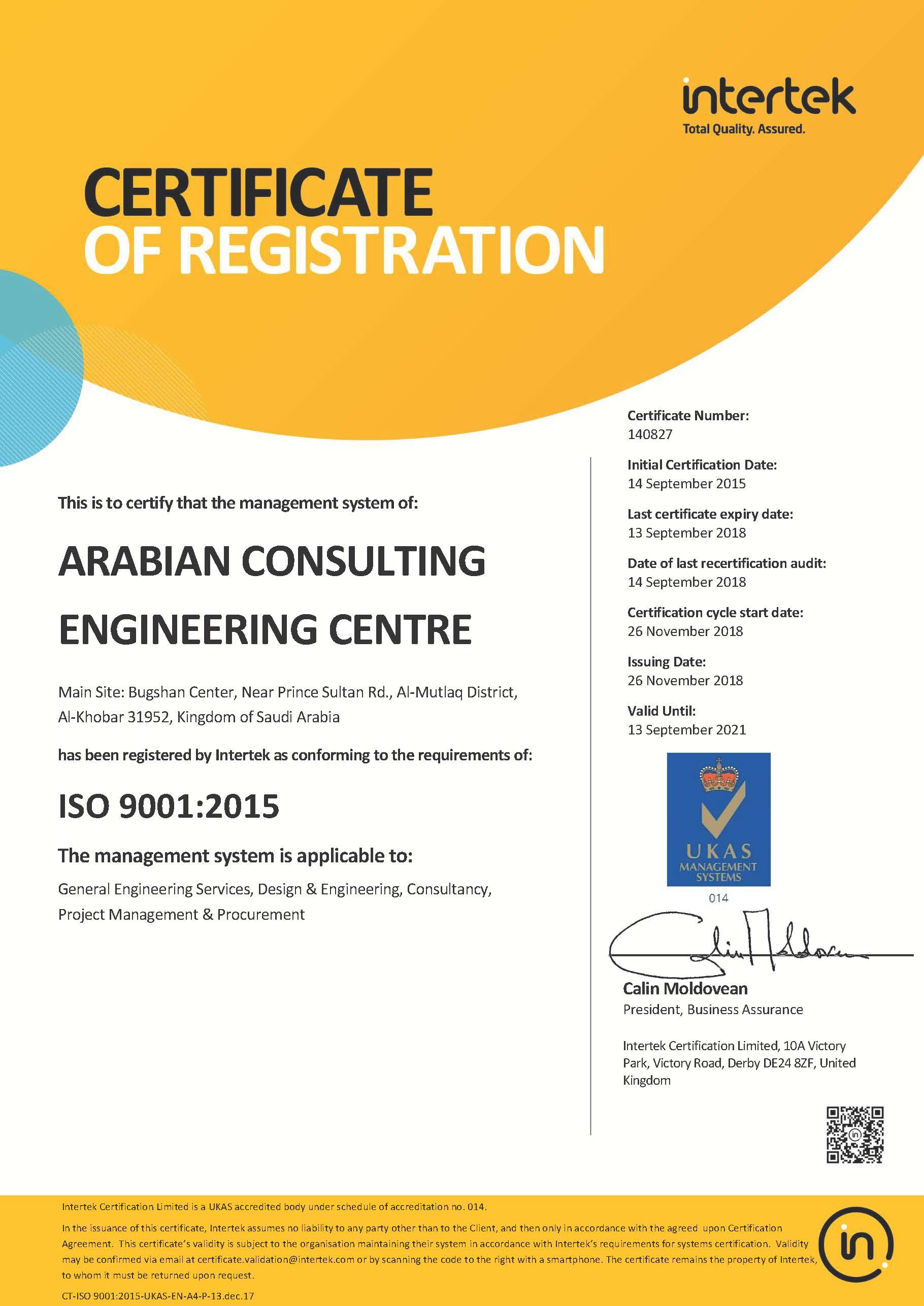 Arabian Consulting Engineering Center (ACEC) is committed to deliver quality products and services to the total satisfaction of the customers ensuring compliance with statutory and regulatory requirements at all times, at maximum effectiveness that satisfy the needs of all stakeholders as well as improve our financial performance. The drive and focus is thus on the enhancement of customer satisfaction through continuous improvement of Quality Management System and the assurance of conformity to customer and applicable statutory and regulatory requirements.
